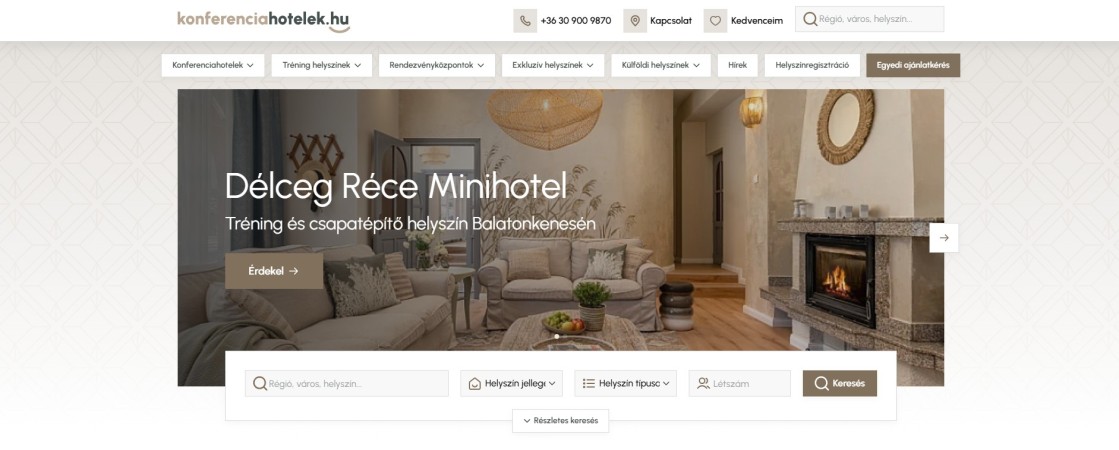 Az oldalon már korábban is szereplő konferenciahelyszínek mellett új céges tréning, workshop helyszínekkel és nagy befogadóképeségű hazai és külföldi rendezvényközpontokkal kiegészülve indult útjára a megújult weboldal. A korábban csak konferenciahoteleket listázó rendezvényhelyszín-kereső oldal ezentúl lehetőséget biztosít kisebb tréning, workshop és csapatépítőhelyszínek számára is a célcsoportjuk célzott elérésére.