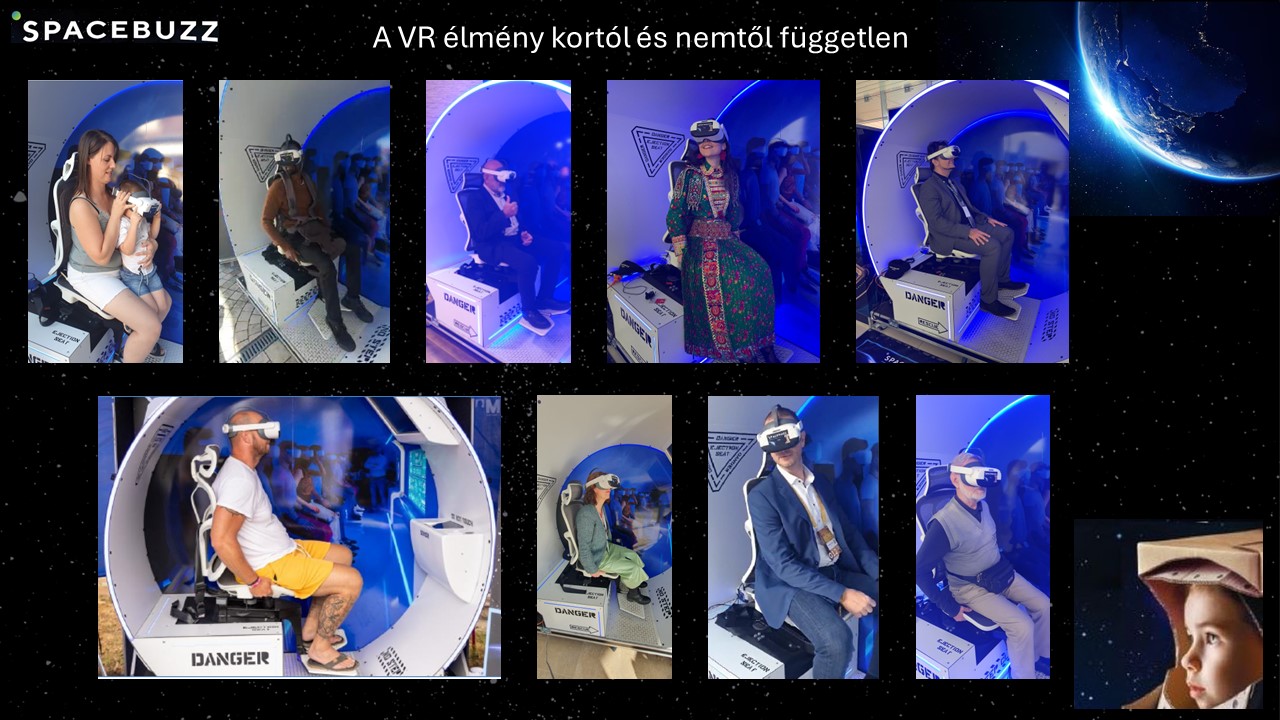 A SpaceBuzz HU VR szimulátor egy rövid, intenzív virtuális űrutazás keretében a Nemzetközi Űrállomásra repíti a résztvevőket, ahol a látogatók a Földre tekintve élhetik át azt a különleges érzést, amelyet az űrhajósok is megtapasztalnak. Az élmény során megjelenik az úgynevezett Overview Effect (Áttekintő Hatás), amely sokakban mély benyomást kelt, és erős érzelmi kapcsolódást hoz létre.